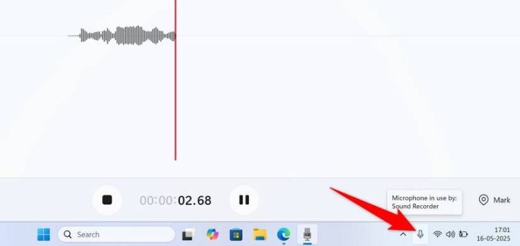 Khi một ứng dụng bắt đầu sử dụng micrô của PC, bạn sẽ thấy biểu tượng micrô trong khay hệ thống (góc dưới bên phải). Di chuột qua biểu tượng này để xem ứng dụng nào đang sử dụng micrô của bạn.