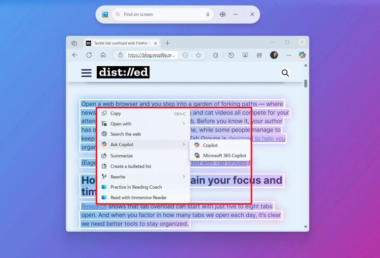 Sau khi hoàn tất các bước, bạn có thể chọn và nhấp chuột phải vào một số văn bản hoặc đối tượng để truy cập các hành động AI giống như khi sử dụng Click to Do như một ứng dụng độc lập.