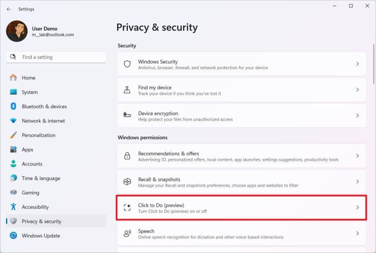 Để tắt Click to Do trên Windows 11, hãy làm theo các bước sau: