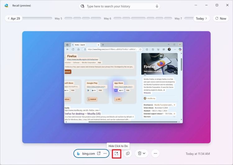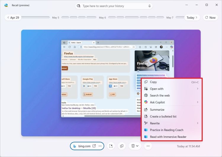 Để mở Click to Do bên trong ứng dụng Windows Recall, hãy sử dụng các tùy chọn sau:
