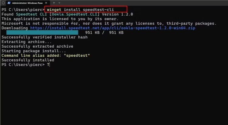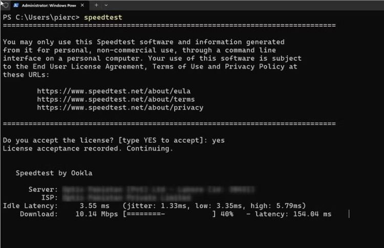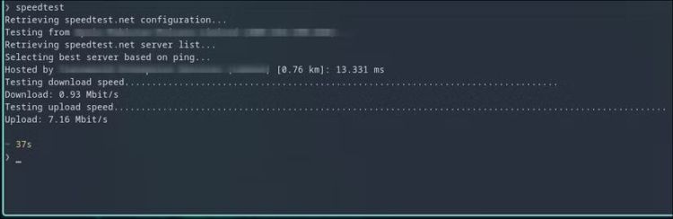 Quá trình cài đặt chỉ cần thực hiện một lần và sau đó bạn chỉ cần nhập lệnh sau để kiểm tra tốc độ internet của mình.