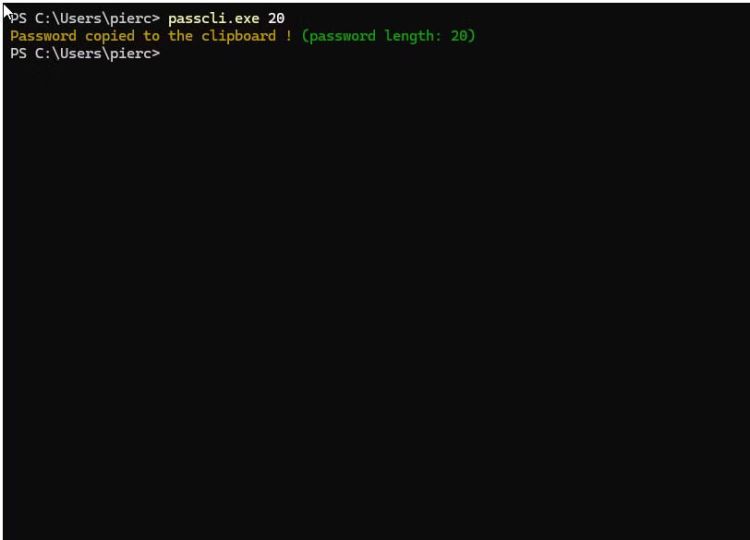 Sau khi cài đặt xong, bạn không cần chạy lại lệnh cài đặt. Chỉ cần mở cửa sổ dòng lệnh và gõ 'passcli.exe' theo sau là độ dài mật khẩu mong muốn.