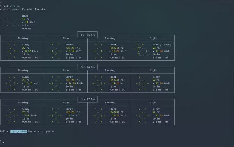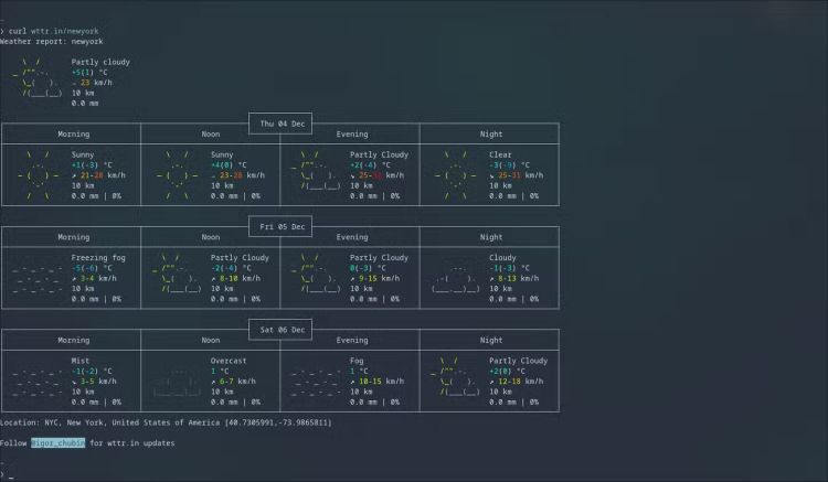 Lệnh này có tính phổ quát và hoạt động trên macOS, Linux và Windows như nhau. Nhập lệnh này để xem thời tiết tại vị trí hiện tại của bạn.
