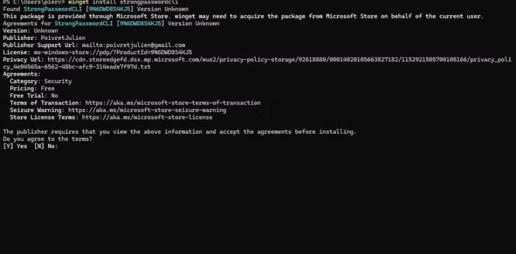Để quá trình này dễ dàng và nhanh chóng hơn, chúng ta có thể cài đặt một công cụ tạo mật khẩu chuyên dụng. Chạy lệnh này một lần để cài đặt ứng dụng bằng winget.