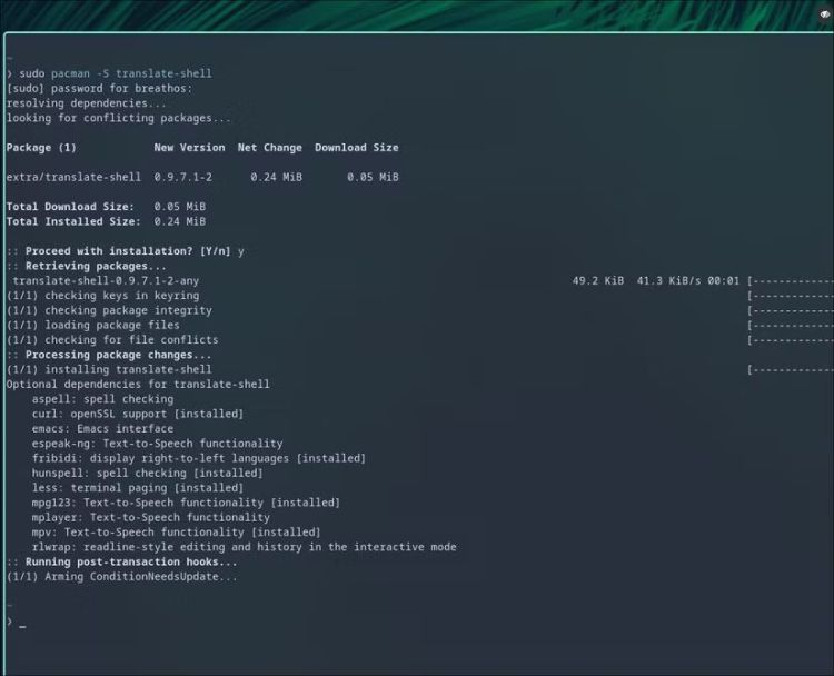 Trên Linux, bạn có thể sử dụng trình quản lý gói gốc để cài đặt ứng dụng tương tự. Tôi đang sử dụng Arch cho bản demo này, vì vậy tôi có thể cài đặt ứng dụng bằng trình quản lý gói pacman.