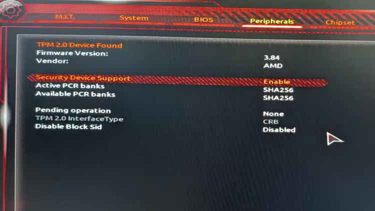 Nếu bạn đang sử dụng phần cứng tương đối hiện đại - từ năm 2016 trở lên - thì phần cứng đó nên hỗ trợ TPM 2.0. Tính năng này thường được bật mặc định trên hầu hết máy tính xách tay, nhưng một số nhà sản xuất bo mạch chủ vẫn tắt nó, ví dụ: nếu bạn mua bo mạch chủ độc lập để lắp ráp máy tính để bàn. Trên bo mạch chủ Gigabyte, bạn có thể tìm thấy tính năng này trong mục Thiết bị ngoại vi, được gắn nhãn là Trusted Computing 2.0. Bên trong, bạn cần bật "Secure Device Support".