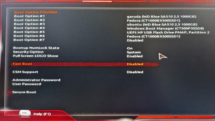 Khởi động nhanh (Fast Boot) là một thiết lập BIOS hoặc UEFI bỏ qua một số kiểm tra phần cứng và quy trình khởi tạo để hệ thống của bạn khởi động nhanh hơn. Trên một số thiết bị, nó có thể không gây ra sự cố, trong khi trên một số thiết bị khác, nó có thể bỏ qua hoàn toàn bộ nạp khởi động hoặc GRUB và khởi động vào hệ điều hành mặc định—ngăn bạn chọn hệ điều hành khi khởi động. Nó cũng có thể vô hiệu hóa các thiết bị USB trong khi khởi động, do đó bàn phím và chuột của bạn sẽ không hoạt động cho đến khi hệ điều hành tải hoàn toàn, ngăn bạn chọn hệ điều hành bạn muốn khởi động, ngay cả khi bạn thấy bộ nạp khởi động.