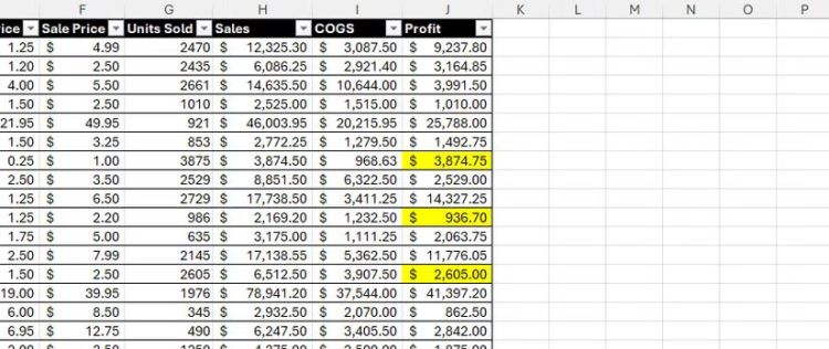 Bây giờ, hãy xem qua từng bảng tính và mỗi khi bạn nhấn vào ô chứa công thức quan trọng—chẳng hạn như phép tính lợi nhuận gộp cuối cùng trên bảng tính Doanh số của bạn—hãy nhập nhãn công thức vào cột A và vào cột B, hãy nhập: