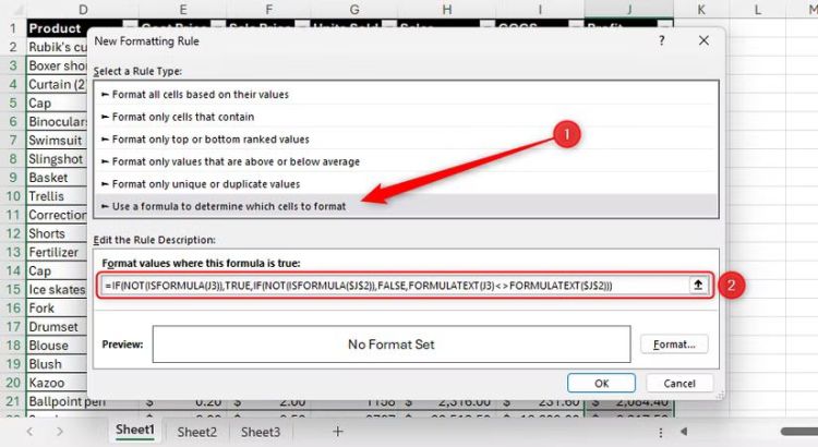 Khi sử dụng cùng với định dạng có điều kiện, hàm FORMULATEXT sẽ giúp bạn giải quyết vấn đề này.