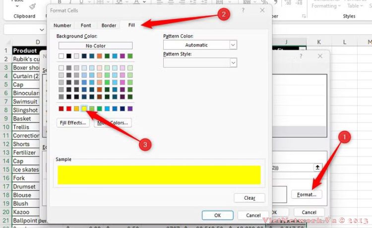 Tiếp theo, nhấp vào "Định dạng" và chọn ô màu vàng để làm nổi bật sự không nhất quán.