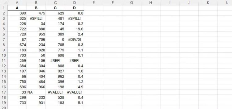 Giả sử bạn nhận được một bảng tính đầy lỗi #DIV/0!, #VALUE!, #REF!, #SPILL! và các lỗi khác. Việc chọn từng ô một để xem lại công thức trên thanh công thức rất tốn thời gian. Hơn nữa, việc phát hiện ra các quy luật trong lỗi gần như là không thể.