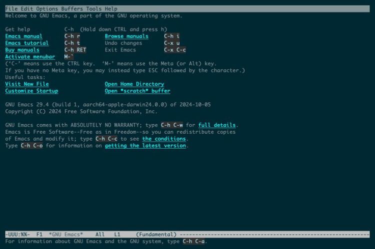 Một chương trình rất phổ biến khác cũng dễ nhận thấy là thiếu Emacs. Đúng là Emacs cũng thường không có trong các bản phân phối Linux hiện đại, nhưng điều đó không làm cho việc thiếu nó khỏi macOS trở nên hợp lý hơn.