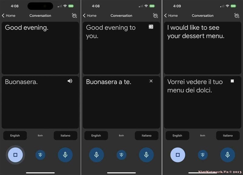 Ứng dụng Google Dịch giúp bạn thực hiện cuộc trò chuyện qua lại với một người nói ngôn ngữ khác. Chọn hai ngôn ngữ và nhấn vào biểu tượng Hội thoại. Sau đó, bạn có thể tiếp tục cuộc trò chuyện theo cách thủ công hoặc tự động.