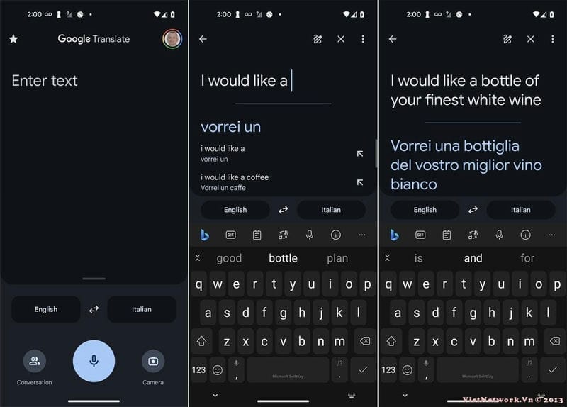 Giả sử bạn muốn dịch một cụm từ tiếng Anh sang tiếng Ý. Nhấn vào tên của ngôn ngữ hiện tại ở bên trái và chọn tiếng Anh làm ngôn ngữ nguồn. Nhấn vào tên ngôn ngữ ở bên phải và chọn tiếng Ý làm ngôn ngữ đích. Tiếp theo, nhấn vào trường có nội dung Nhập văn bản và bắt đầu nhập từ hoặc cụm từ tiếng Anh bạn muốn dịch.