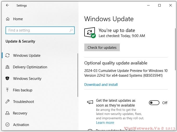 2.1. Cách 1: Cài đặt bản cập nhật Windows mới nhất
