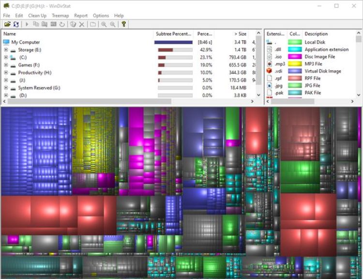 Ở cấp độ cá nhân, tôi thường xuyên sử dụng WinDirStat để dọn dẹp máy tính của mình. Bất cứ khi nào một trong các ổ đĩa của tôi bắt đầu đầy, tôi sẽ mở chương trình và kiểm tra xem cái gì đang sử dụng hết dung lượng. Thông thường, đó là các tệp tôi không còn cần nữa và có thể xóa. Trong trường hợp không thể xóa chúng, tôi sẽ di chuyển các tệp đó đến NAS của mình và lấy lại dung lượng theo cách đó.