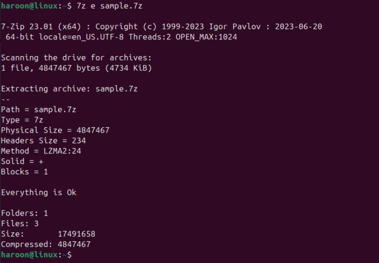 Sau khi cài đặt, bạn có thể sử dụng p7zip thông qua terminal hoặc thông qua giao diện đồ họa của trình quản lý tệp. Ví dụ, để giải nén tệp 7Z trong terminal, hãy chạy lệnh sau: