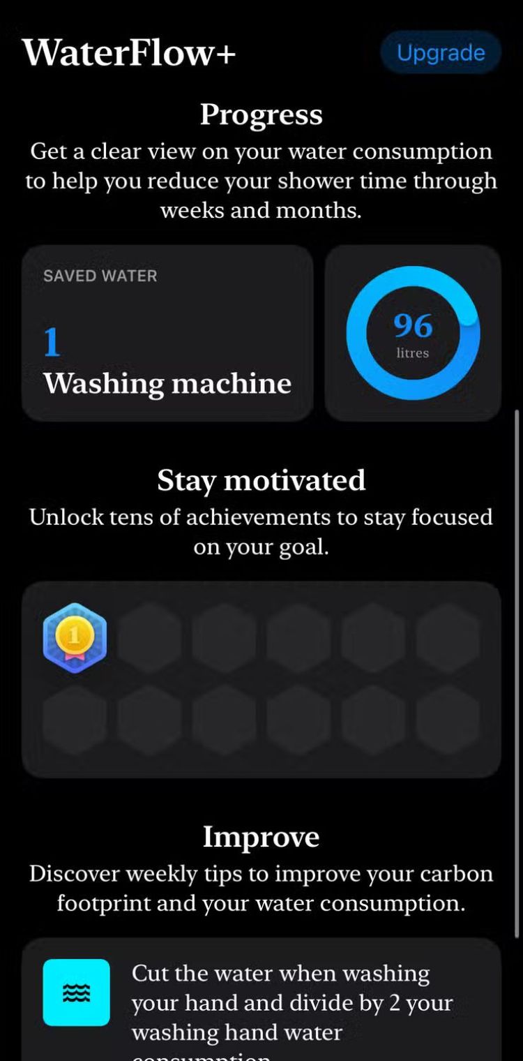 Là một người có thói quen xấu là dành thời gian không cần thiết khi tắm và lãng phí nước, WaterFlow là một cứu tinh (và nước) đã giúp tôi cắt giảm đáng kể lượng nước tiêu thụ. WaterFlow cũng theo dõi lượng nước và cây bạn đã tiết kiệm được, với các mẹo hàng ngày để tiết kiệm nước.