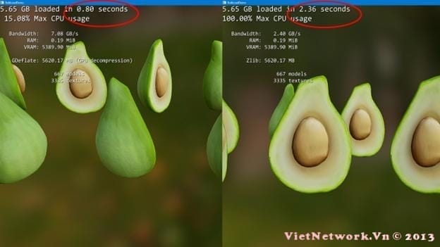 Thông thường, một ổ đĩa sẽ gửi dữ liệu đã nén tới CPU để giải nén trước khi chuyển dữ liệu đó sang GPU để hiển thị. Tuy nhiên, công việc giải nén đó cần có thời gian và gây căng thẳng cho CPU. Tốc độ tải tổng thể có thể cải thiện do bạn không truyền phát dữ liệu không nén, nhưng bạn vẫn yêu cầu bộ xử lý thực hiện công việc khi nó đã chịu trách nhiệm cho rất nhiều việc khác trong suốt phiên chơi trò chơi thông thường.