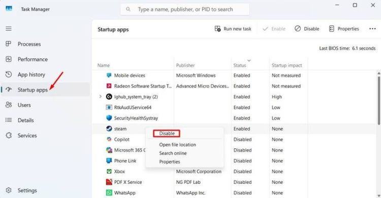 Điều tốt nhất bạn có thể làm trong trường hợp này là duyệt qua tất cả các ứng dụng khởi động và vô hiệu hóa những ứng dụng không cần thiết. Các trình khởi chạy trò chơi như Steam thường có quyền khởi chạy khi khởi động. Vì vậy, nếu bạn đã cài đặt bất kỳ ứng dụng nào như vậy, bạn nên ngăn chúng tự động khởi chạy.
