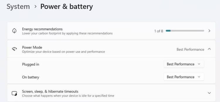 Trong phần Power Mode của cửa sổ Power & Battery, bạn sẽ thấy ba tùy chọn: Best Performance, Balanced và Best Power Efficiency. Nếu bạn đang sử dụng máy tính để bàn, tôi thực sự khuyên bạn nên chọn tùy chọn "Best Performance". Như tên gọi của nó, tùy chọn này sẽ cấu hình Windows để cung cấp hiệu suất tốt nhất.