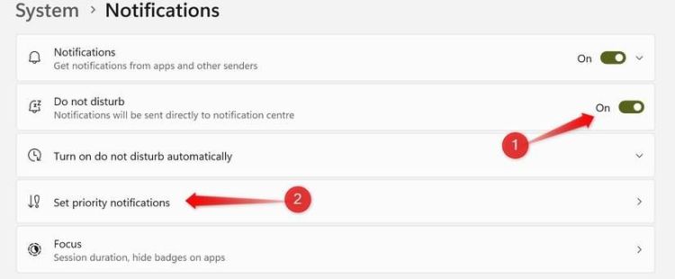 Chỉ cần bật chế độ này và bạn sẽ chỉ nhận được thông báo đã chọn. Khi bạn đã sẵn sàng nhận lại tất cả thông báo, hãy tắt chế độ này. Để bật tính năng này, hãy mở ứng dụng Cài đặt, đi tới tab "Hệ thống", chọn "Thông báo" và bật "Không làm phiền". Tại đây, bạn có thể tùy chỉnh ứng dụng nào có thể gửi thông báo khi chế độ này đang hoạt động từ "Đặt thông báo ưu tiên".
