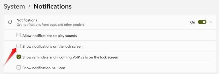 Để cải thiện quyền riêng tư hoặc tận hưởng màn hình khóa sạch hơn mà không có tiếng ping thông báo khi bạn rời khỏi, bạn có thể ngăn Windows hiển thị chúng trên màn hình khóa. Để thực hiện, hãy vào Cài đặt > Hệ thống > Thông báo. Sau đó, mở rộng menu "Thông báo" và bỏ chọn hộp bên cạnh "Hiển thị thông báo trên màn hình khóa".