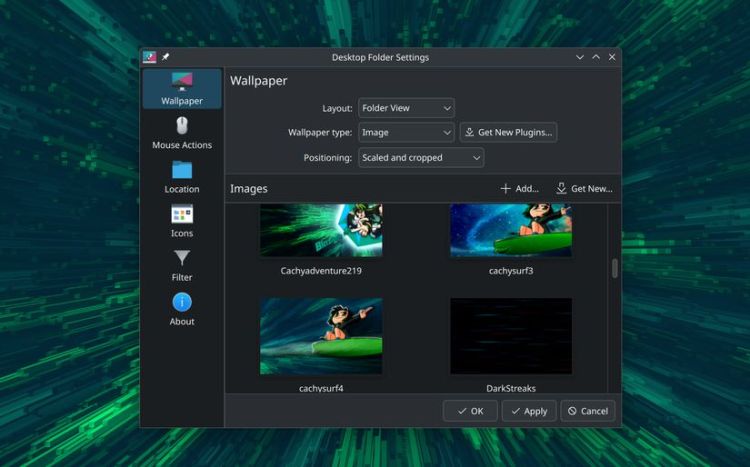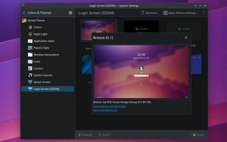 Khi xem các ảnh chụp màn hình cũ hơn của CachyOS, rõ ràng là các nhà phát triển đã tập trung nhiều hơn vào chủ đề của bản phân phối. Khi bản phân phối được cài đặt, chủ đề có mặt, nhưng không quá mức cần thiết. Ví dụ, khi sử dụng màn hình nền KDE chuẩn mà trình cài đặt cung cấp, chủ đề mặc định là chủ đề Breeze Dark.