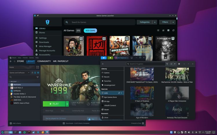 Trong ứng dụng CachyOS Hello, khởi chạy khi khởi động, hãy vào "Apps/Tweaks" và nhấp vào nút "Install Gaming packages" để cài đặt Steam, Lutris và Heroic Games Launcher cùng một lúc. Nếu bạn muốn mô phỏng trò chơi hoặc cần các tùy chọn khác, bạn có thể cần chuyển sang AUR, nhưng ba tùy chọn này đã sẵn sàng để sử dụng ngay.