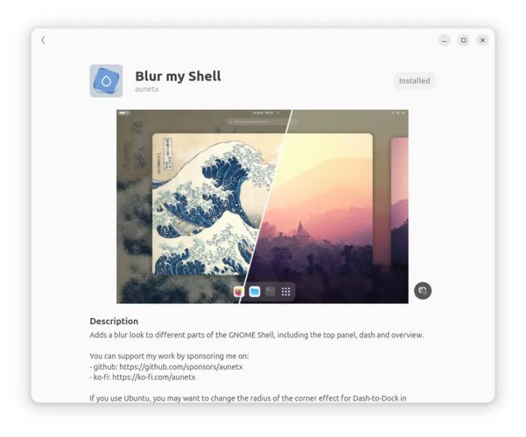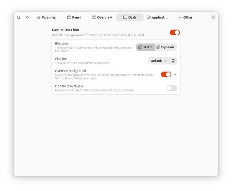 Blur My Shell chỉ mang tính thẩm mỹ—nhưng đôi khi đó chính xác là những gì bạn cần. Tiện ích mở rộng này thêm hiệu ứng làm mờ cho shell và các thành phần UI của GNOME, giúp mọi thứ trông bóng bẩy và hiện đại hơn đáng kể.