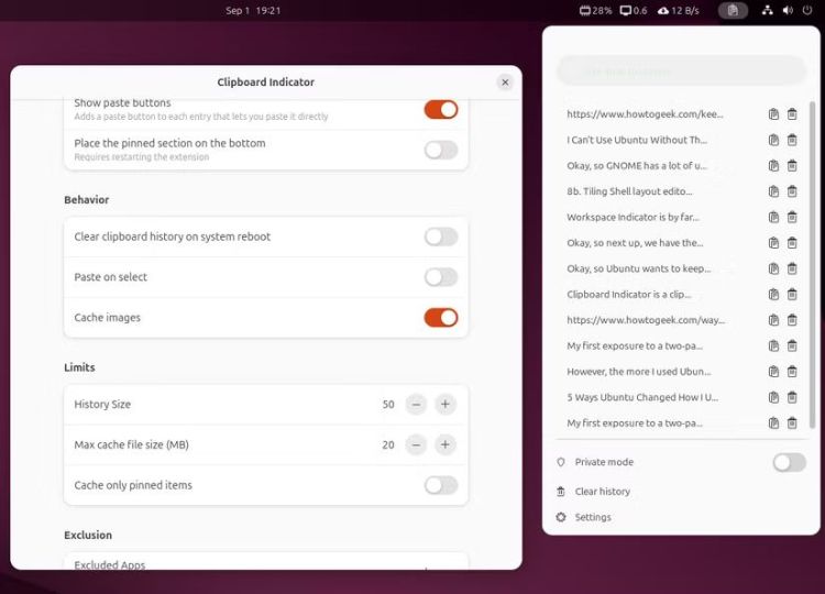 Clipboard Indicator là một trình quản lý lịch sử clipboard, thêm một biểu tượng vào bảng điều khiển phía trên, cho phép bạn xem lại mọi thứ bạn đã sao chép gần đây. Thành thật mà nói, cá nhân tôi trước đây đã sử dụng CopyQ, một ứng dụng chứ không phải tiện ích mở rộng, vì tôi thấy nó đầy đủ tính năng hơn. Tuy nhiên, CopyQ có một số vấn đề khó chịu với Wayland, và nếu bạn đang chạy Wayland (mà Ubuntu hiện đang mặc định), Clipboard Indicator là lựa chọn thay thế ổn định hơn.