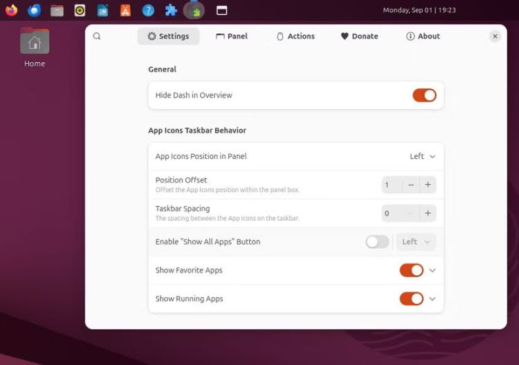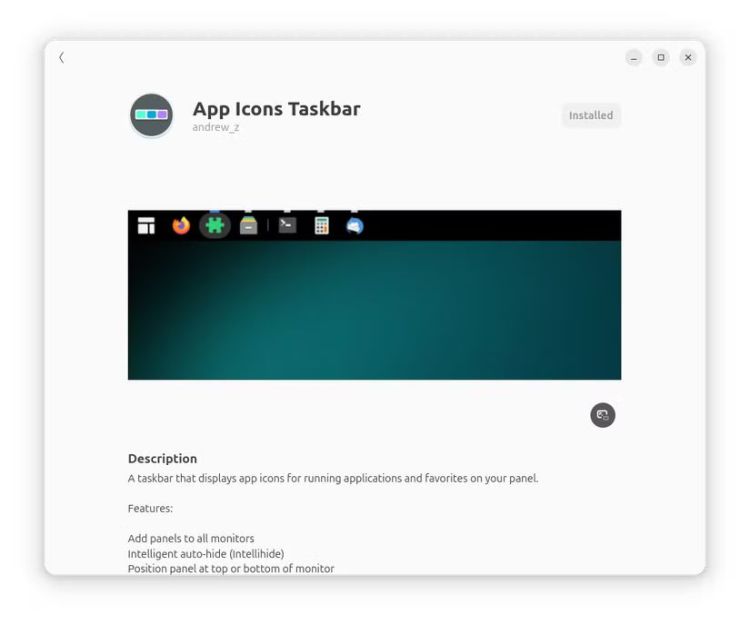 App Icon Taskbar ẩn thanh dock mặc định của Ubuntu và thay vào đó tạo một thanh tác vụ ứng dụng ngay trên bảng điều khiển phía trên—và thành thật mà nói, nó cho cảm giác sử dụng không gian hiệu quả hơn nhiều. Giờ đây, có một tiện ích mở rộng khác của GNOME: Dash to Panel, cũng có chức năng tương tự, nhưng tôi thích tiện ích mở rộng này hơn vì nó cho tôi khả năng kiểm soát chi tiết và linh hoạt hơn đối với bố cục bảng điều khiển.