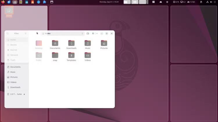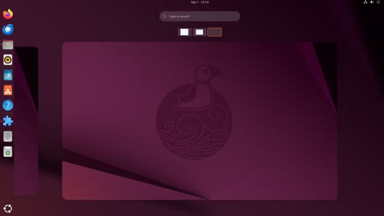 Thay đổi đáng chú ý nhất diễn ra ở màn hình tổng quan của GNOME. Theo mặc định, Ubuntu sẽ hiển thị nền xám xỉn này khi bạn nhấn phím Super để truy cập màn hình Tổng quan. Khi tính năng Blur My Shell được kích hoạt, toàn bộ giao diện sẽ chuyển sang hiệu ứng mờ ảo tuyệt đẹp của hình nền đang hoạt động. Đây là một thay đổi nhỏ nhưng lại tạo nên hiệu ứng thị giác vô cùng ấn tượng.