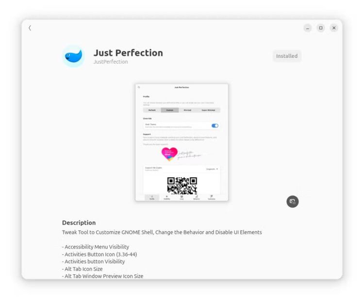 Just Perfection là một tiện ích mở rộng của GNOME cho phép bạn tinh chỉnh hầu như mọi khía cạnh của giao diện shell—và thành thật mà nói, đây là thứ đầu tiên tôi cài đặt trên bất kỳ bản cài đặt Ubuntu mới nào. Mặc định của GNOME thì ổn, nhưng chúng không phải là mặc định của tôi, nếu bạn hiểu ý tôi.