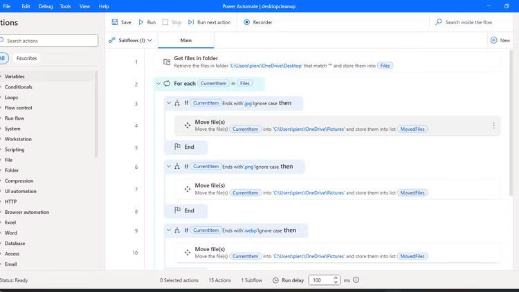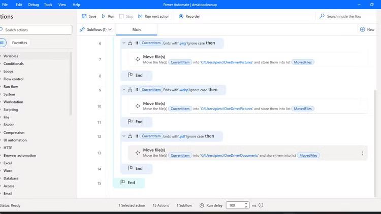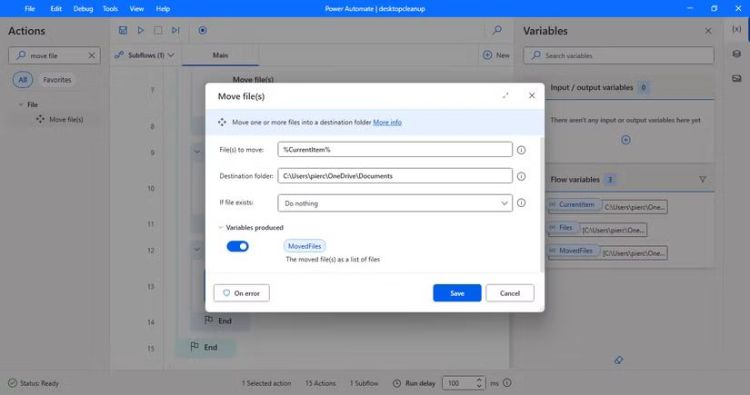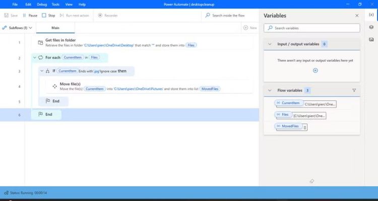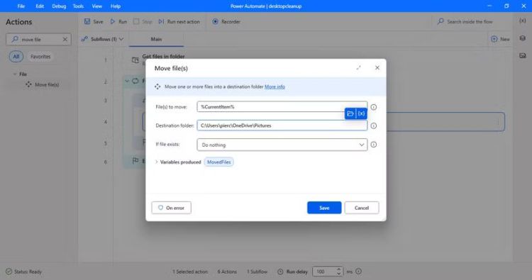 Vậy là xong. Luồng Power Automate đầu tiên của chúng tôi sẽ quét tất cả các tệp trên màn hình nền, tìm kiếm các tệp JPG và tự động di chuyển chúng vào thư mục Pictures.