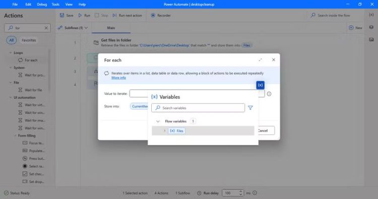 Nói một cách đơn giản, Power Automate sẽ xem xét từng tệp trên màn hình nền và đối với mỗi tệp, nó sẽ đưa tệp đó vào bất kỳ logic vòng lặp nào mà chúng ta gán cho nó.