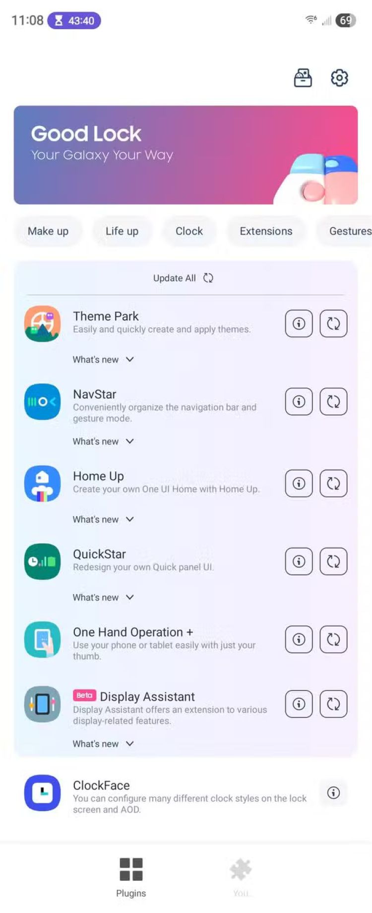 Mặc dù cài đặt của Samsung rất đa dạng, nhưng bạn vẫn không thể làm được mọi thứ. Đó là lý do Good Lock ra đời. Good Lock bao gồm nhiều plugin xử lý các phần khác nhau của điện thoại. "Home Up" quản lý màn hình chính, bao gồm các tùy chỉnh cho thanh tác vụ và bảng điều khiển cạnh (đây là một tính năng tuyệt vời nhưng khá ẩn của Samsung ). "Display Assistant" cho phép bạn cấu hình các cài đặt màn hình bổ sung, chẳng hạn như thay đổi thời gian tắt màn hình đối với một ứng dụng cụ thể. Pentastic quản lý bút S Pen, cho phép bạn thay đổi giao diện và chức năng của menu lệnh Air.