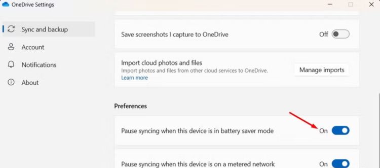 Ngoài việc tạm dừng đồng bộ hóa thủ công, tôi khuyên bạn nên cấu hình OneDrive để tránh đồng bộ hóa tệp khi hệ thống đang ở chế độ tiết kiệm pin. Khi bật chế độ tiết kiệm pin, máy tính của bạn sẽ giới hạn một số quy trình để tiết kiệm pin. Tuy nhiên, nếu tiếp tục đồng bộ hóa OneDrive ở chế độ đó, hệ thống sẽ tiêu tốn nhiều tài nguyên hơn, dẫn đến hao pin nhanh hơn.