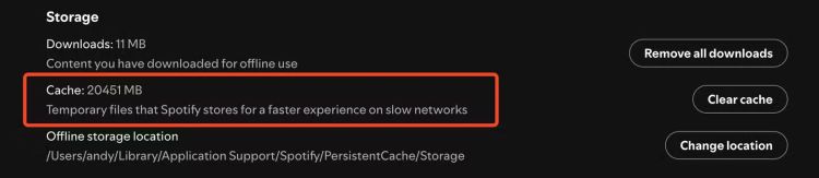 Một yếu tố khác ngốn dung lượng lưu trữ ngầm là bộ nhớ đệm ứng dụng. Các ứng dụng tạm thời lưu trữ dữ liệu khi chúng hoạt động để có thể truy cập nhanh hơn vào lần sau. Bộ nhớ đệm này có thể tích tụ theo thời gian và trở nên khá lớn. Các ứng dụng đa phương tiện có thể là nguyên nhân chính. Khi tôi bật âm thanh lossless trong Spotify, bộ nhớ đệm Spotify của tôi nhanh chóng tăng lên khoảng 30GB.