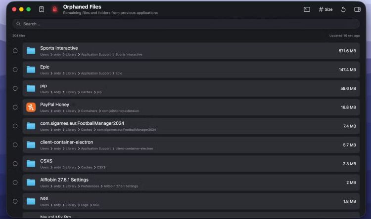Pearcleaner cũng có thể định vị các tệp còn sót lại từ các ứng dụng bạn đã gỡ cài đặt. Một số tệp có thể có dung lượng lớn đến mức đáng ngạc nhiên.