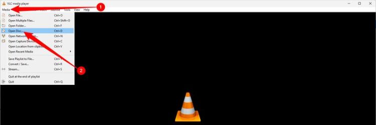 Sau khi bạn đã cài đặt VLC và chèn DVD vào ổ đĩa, hãy khởi chạy VLC và nhấp vào "Media" ở góc trên bên trái. Trong menu thả xuống, chọn "Open Disk".