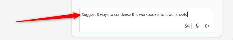 Bây giờ, trong trường văn bản của thanh bên, hãy nhập lệnh cụ thể, như Gợi ý 3 cách để thu gọn sổ làm việc này thành ít trang tính hơn và nhấn Enter.