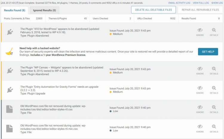 Sau khi xử lý phần mềm độc hại, bạn cũng có thể muốn giải quyết bất kỳ vấn đề nào khác mà quá trình quét phát hiện được. Ví dụ: bạn có thể muốn xử lý bất kỳ plugin nào đã lỗi thời.