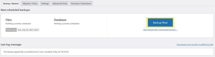 Sao lưu lại  trang web của bạn: Sau khi loại bỏ phần mềm độc hại, hãy tạo một bản sao lưu mới cho trang web của bạn. Bằng cách đó, bạn luôn có thể khôi phục trang web về phiên bản sạch, không có phần mềm độc hại nếu có sự cố xảy ra trong tương lai.
